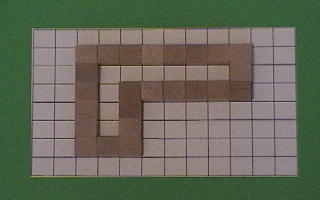 The above wall is acceptable. But the configuration below is not acceptable, because the enclosed area consists of two separate "rooms", and because not all 24 blocks are used: