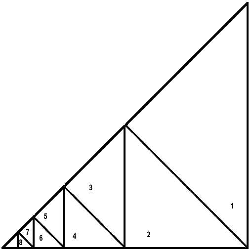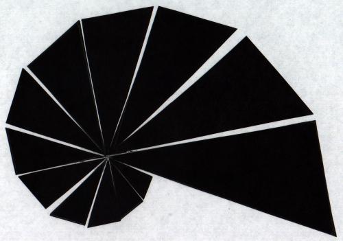 6. Using a triangle of another index card, draw all the necessary llines on your triangle. You should see n+1 similar triangles; the last one is to be discarded. 7. Cut along the drawn lines and form a spiral. Fix it in the center with a square of Scotch tape. Precision in your work is very important!