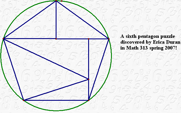 A sixth pentagon puzzle discovered by Erica Duran in Math 313 spring 2007!