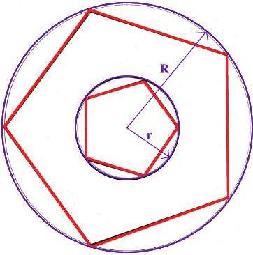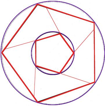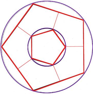 circle is 4.1 cm. We inscribe a regular pentagon in the small circle. In our