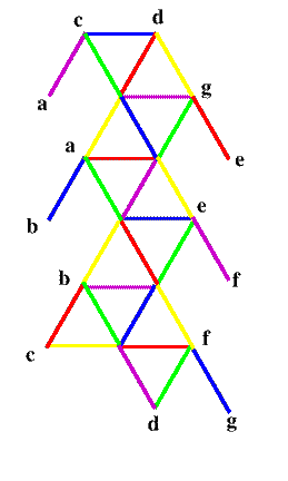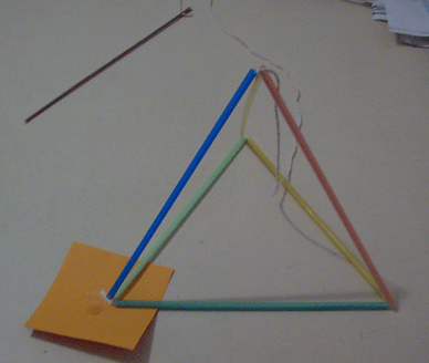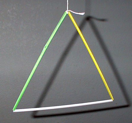 Make a straw triangle with edges of three colors, A, B, C, which will hang with edge C at the top, and vith a vertex pointing down.