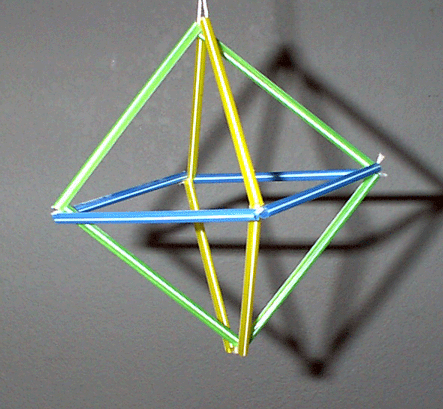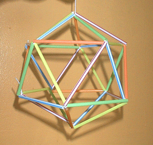 Straw polyhedra are skeletal polyhedra whose edges are non-bendable (8 inches long or less) colored straws, held together by thin cotton twine threaded through the straws. Straw polyhedra are very light and attractive looking, and they are a very valuable teaching help in the early and middle grades.