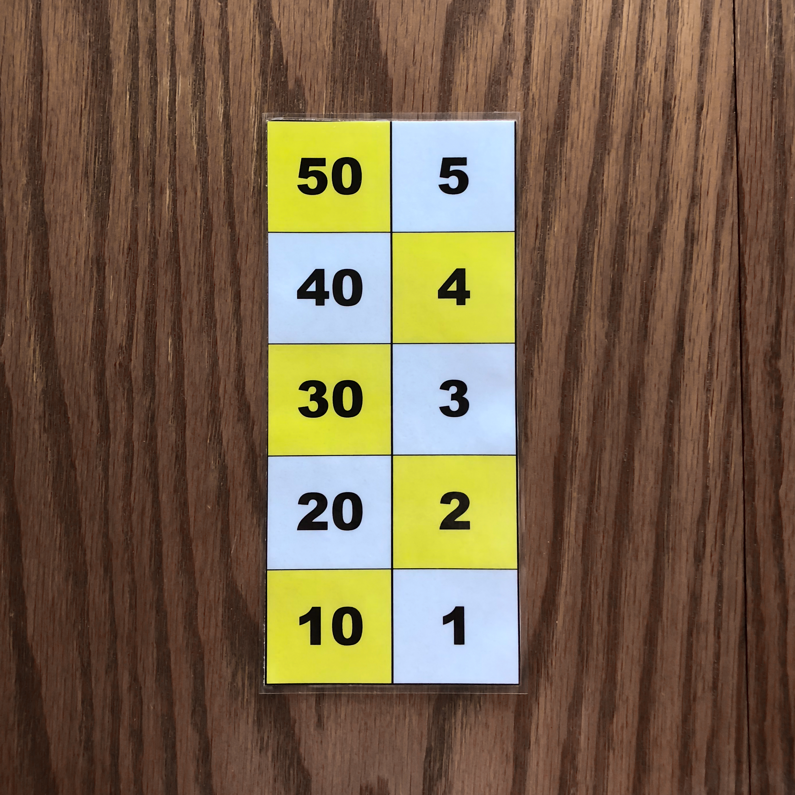 Task Children work in groups of two, three, or four. The teacher gives to each child (verbally or in writing) a number in the range from 1 to 99. Each child represents her/his number on the board using white counters. Then, a pair of children in the same group compares their numbers and finds their difference, using the method described below. This task should be repeated many times until children can do it with ease and without errors. This task should not be taught as "discovery learning". The teacher should show how to do it and encourage children to learn from and help each other. An Explanation of the Method Using an Example 1. Assume that children need to compare the two numbers 81 and 57, which they have already represented on their boards with white counters. They should use as few counters as possible to represent each number. They may represent the same number in different ways. For example, the number 7 can be represented on the board as 5+2 or 4+3.
