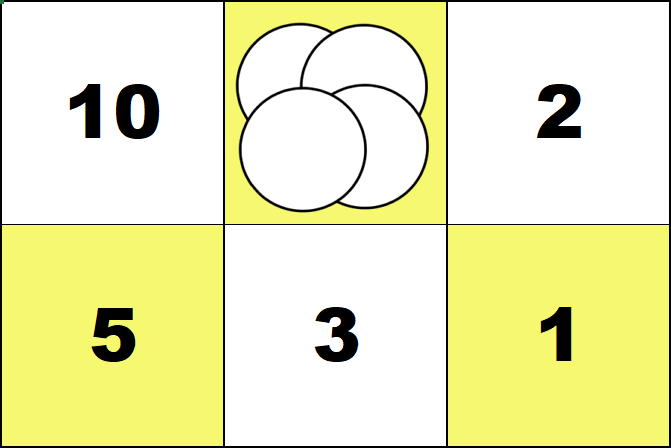 Regroup 3 + 3 + 2 + 2 = 10 on the rightmost board.