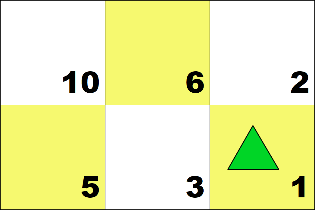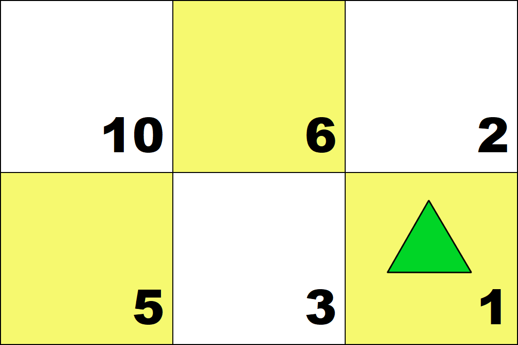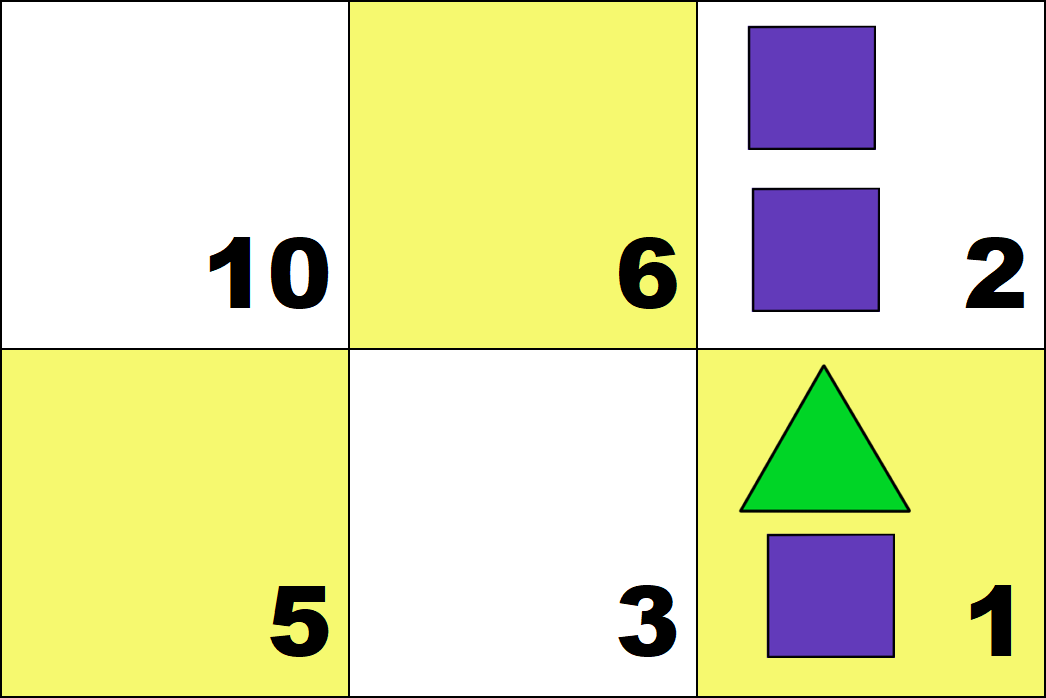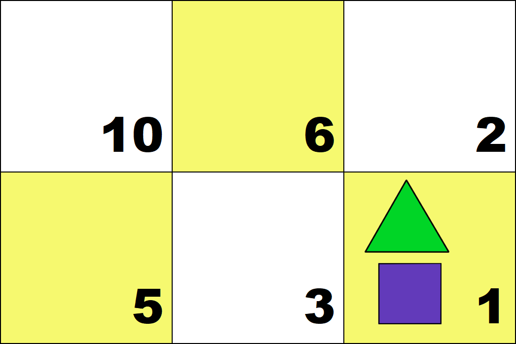 T = 9 So the tens digit, the triangle counter, is 9. 92 is our two-digit number! Let’s check it. The sum of the digits is 11: 9 + 2 = 11. The tens digit is one more than four times the units digit. 9 = 1 + 4*2. 9 = 9. Got it! Number Board index |