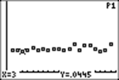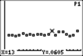 Then you can look at the 20 frequencies that were obtained in the final graph that was displayed. You do this by pressing TRACE and then the right Gameboy. It will show the x coordinate and the y coordinate, and their values. (Be sure that under FORMAT you have CoordOn turned on; otherwise you will not see the values of the coordinates.)