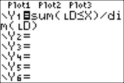 returns the value one for any element of the list LD which is less than or equal to X. Y1 computes the frequency, a number between 0 and